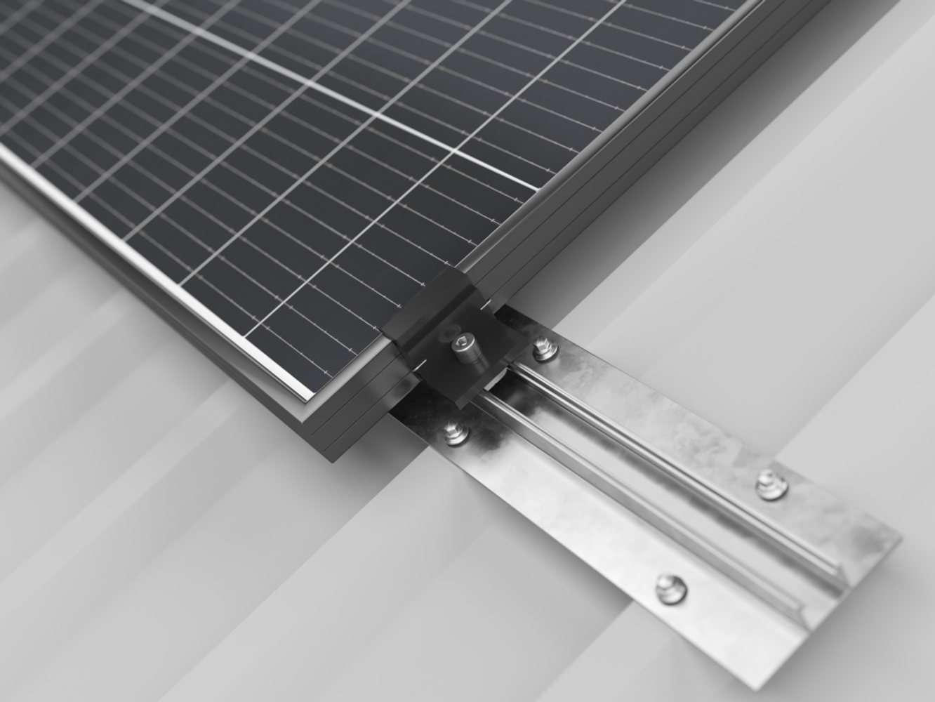 Corab T-02 system is a photovoltaic construction for mounting on a trapezoid sheet. Modules can be arranged both vertically and horizontally. The system is very easy to install, and thanks to small number of short elements, it is also easy and cheap to transport. Aluminum bridges are insulated for further metal sheet protection against damages.
