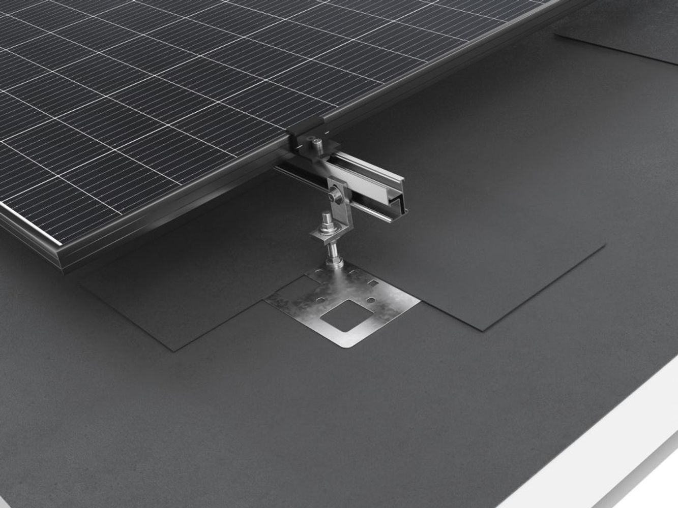 Corab System T-05M is a photovoltaic structure dedicated to pitched roofs with an inclination from 6 to 16 degrees covered with a membrane or felt tiles. This solution guarantees not only a safe distribution of the weight of the entire installation but also ensures the complete tightness of the insulation. The assembly method can be described as invasive, but thanks to the welding of bituminous tiles or membrane, the roof remains tight.