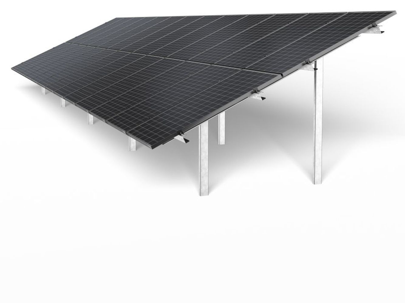 Corab WS-017 system is a two-support structure dedicated to large farm projects. The supports are installed by driving them into the ground with a pile driver. They are made of corrosion-resistant Magnelis, which ensures up to a 25-year warranty on the anti-corrosion coating. The modules are installed vertically in two rows at an inclination angle of 25 -30 degrees.